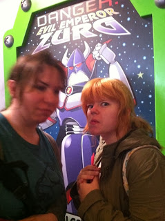 Die Bahn an sich war ganz witzig, man musste lauter Aliens abschießen, aber irgendwie hatte ich das Gefühl das ich entweder zu doof zum Zielen bin, oder das mein Teil einfach Scheiße reagiert hat. xD Aber es war dennoch sehr spaßig. Wenn auch wirklich mehr für kleine Kinder, aber waaayne! XD